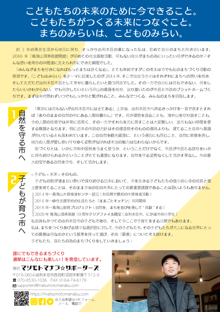 マツモトマナブがいま思うこと、伝えたいことをビラにまとめました。